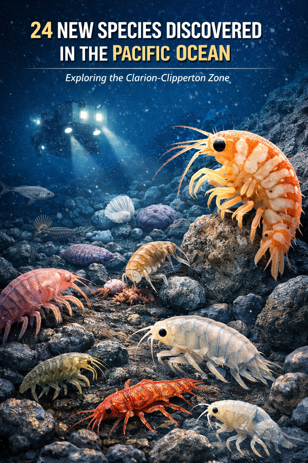 Deep in the central Pacific Ocean, specifically in the Clarion-Clipperton Zone (CCZ), scientists have discovered previously unknown marine species. A research team from the Department of Invertebrate Zoology and Hydrobiology at the University of Lodz identified and described 24 new species of amphipods from this region.